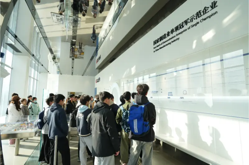 اس کے بعد ، اساتذہ اور طلباء نے ذہین مینوفیکچرنگ کی اگلی لائنوں میں داخل ہوئے ، مشینی ورکشاپ کا دورہ کیا۔ ورکشاپ میں ، سی این سی مشینی مراکز اور خودکار اسمبلی لائنیں تیز رفتار سے چلتی ہیں ، روبوٹک ہتھیاروں نے مختلف کاموں کو عین مطابق مکمل کیا ، اور ڈیجیٹل پروڈکشن سسٹم نے "گرین فیکٹری" اور "ذہین ورکشاپ" کے ہم آہنگی اثر کو ظاہر کرتے ہوئے ، حقیقی وقت میں پیداوار کی پیشرفت اور معیار کی نگرانی کے اعداد و شمار کو ظاہر کیا۔ کمپنی کے تکنیکی ماہرین نے اساتذہ اور طلباء کو خام مال پروسیسنگ سے لے کر سازوسامان کی اسمبلی تک پورے عمل کے ذریعے رہنمائی کی ، جس میں کلیدی ٹیکنالوجیز کے اطلاق جیسے سی این سی آلات کا باہمی ربط اور عین مطابق پیداوار کی حیثیت سے متعلق سینسنگ کی وضاحت پر توجہ دی گئی ہے۔ طلباء تکنیکی ماہرین کے ساتھ فعال طور پر مشغول ہوگئے ، پروسیسنگ کی اصلاح اور سامان کی بحالی کی تکنیک جیسے امور پر تبادلہ خیال کرتے ہوئے ، سائٹ پر سیکھنے کا ایک مضبوط ماحول پیدا کرتے ہیں۔